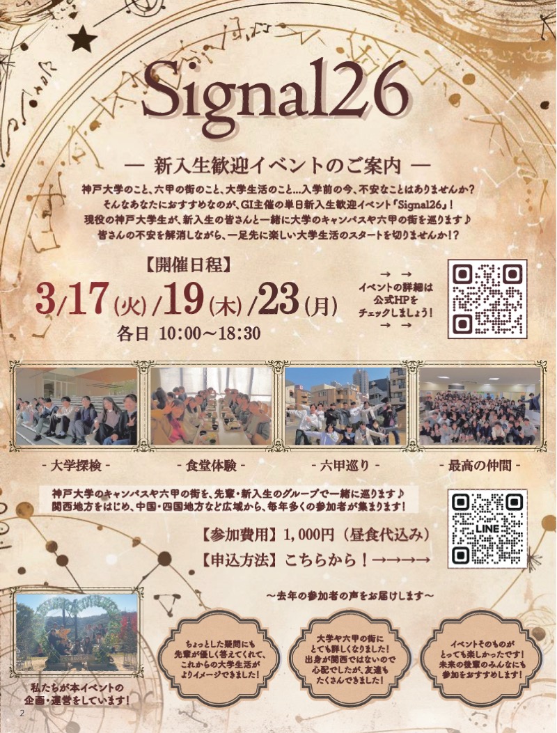 3月15日(日)より新入生歓迎イベントSignal26公式LINEで随時発表
